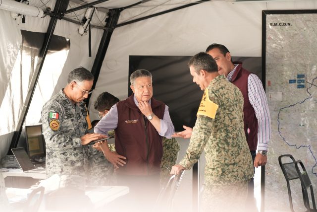 El gobernador Julio Menchaca Salazar y la presidenta del Patronato del Sistema DIF Hidalgo, Edda Vite Ramos, son el sostén estratégico y emocional de todo este equipo que desde muy temprano entrega su trabajo a las y los hidalguenses afectados por las lluvias en muchas comunidades del estado.