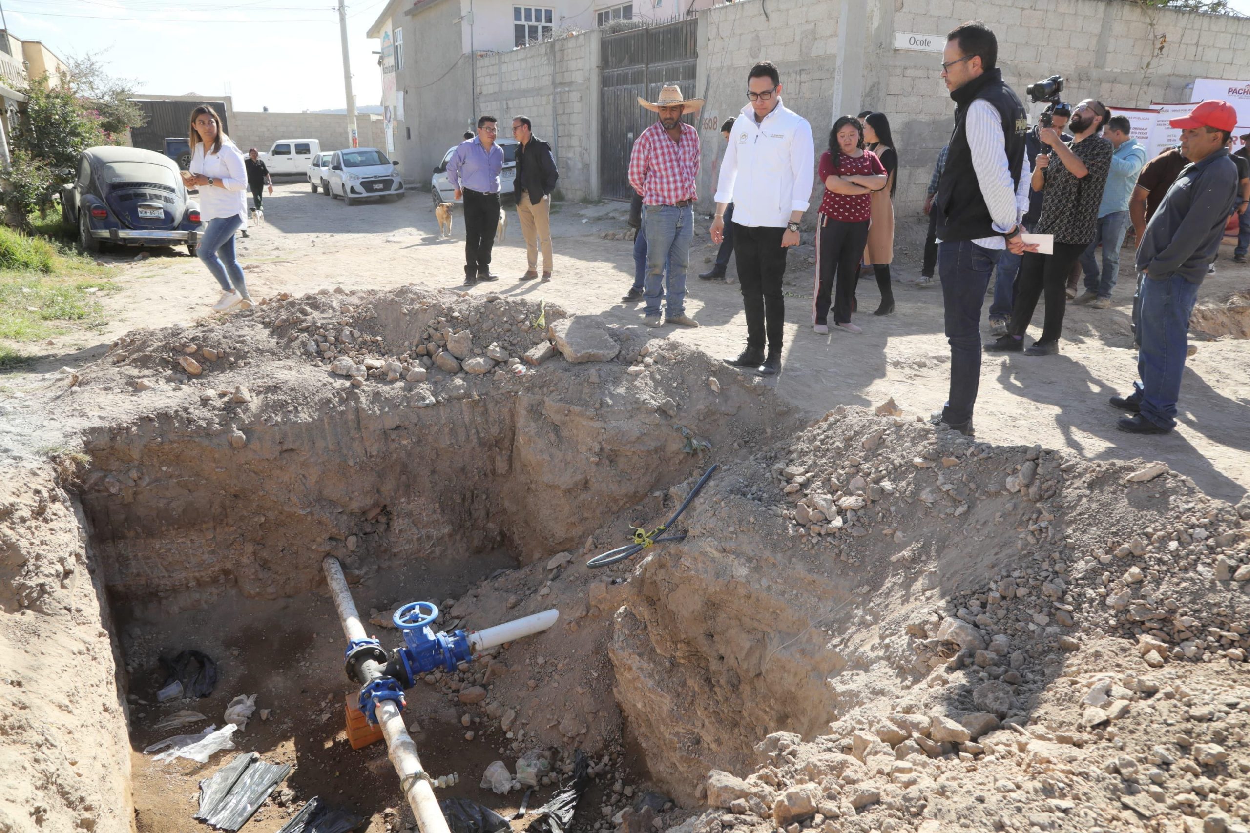 Durante el recorrido, se verificó el avance de la construcción de la red de agua potable en la calle de Ocote en la colonia Los Abetos, el drenaje sanitario en Río Texas de Ampliación El Palmar, la pavimentación de concreto hidráulico en Margarita Morán de Luz del Carmen, así como en Manuel Acuña en Cristina Rosas Illescas.