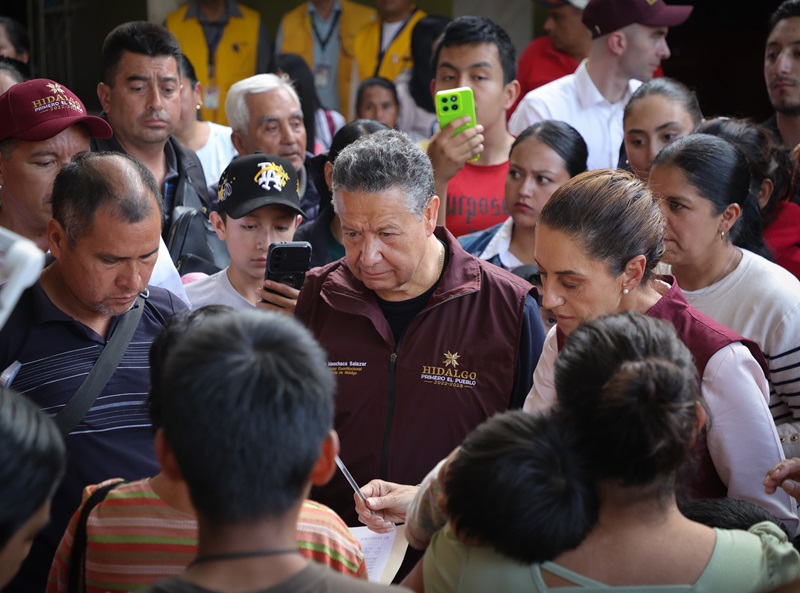 A una semana de las afectaciones provocadas por las lluvias torrenciales en Hidalgo, la presidenta Claudia Sheinbaum, recorrió junto con el gobernador Julio Menchaca Salazar, comunidades afectadas en los municipios de Tianguistengo y Huehuetla, ubicadas en la Sierra y la zona Otomí-Tepehua, anunciando que esta semana por iniciar, se levantarán los censos para canalizar los apoyos respectivos de manera directa, contemplando ayuda para la reconstrucción de hogares dañados y, lo más importante, la reubicación de aquellas casas que se perdieron de manera total al ubicarse en zonas de alto riesgo.