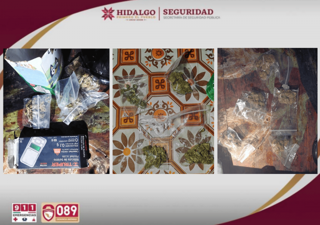 Durante esta acción, también se localizaron 110 dosis de presunta droga, consistentes en 70 de hierba seca con características de la marihuana y 40 de sustancia granulada con características del cristal, además de un arma corta de fabricación artesanal, confirmando la relación directa entre los ilícitos vehiculares y la comercialización de narcóticos.