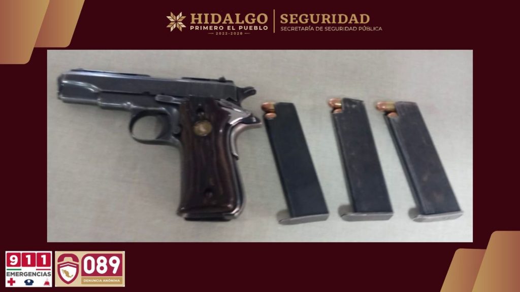 Durante la acción operativa y tras el protocolo correspondiente, fue asegurada un arma corta, tres cargadores abastecidos con 12 cartuchos útiles, los cuales quedaron a disposición de la autoridad competente junto con las personas involucradas, una mujer y un hombre, quien cuenta con antecedentes penales.