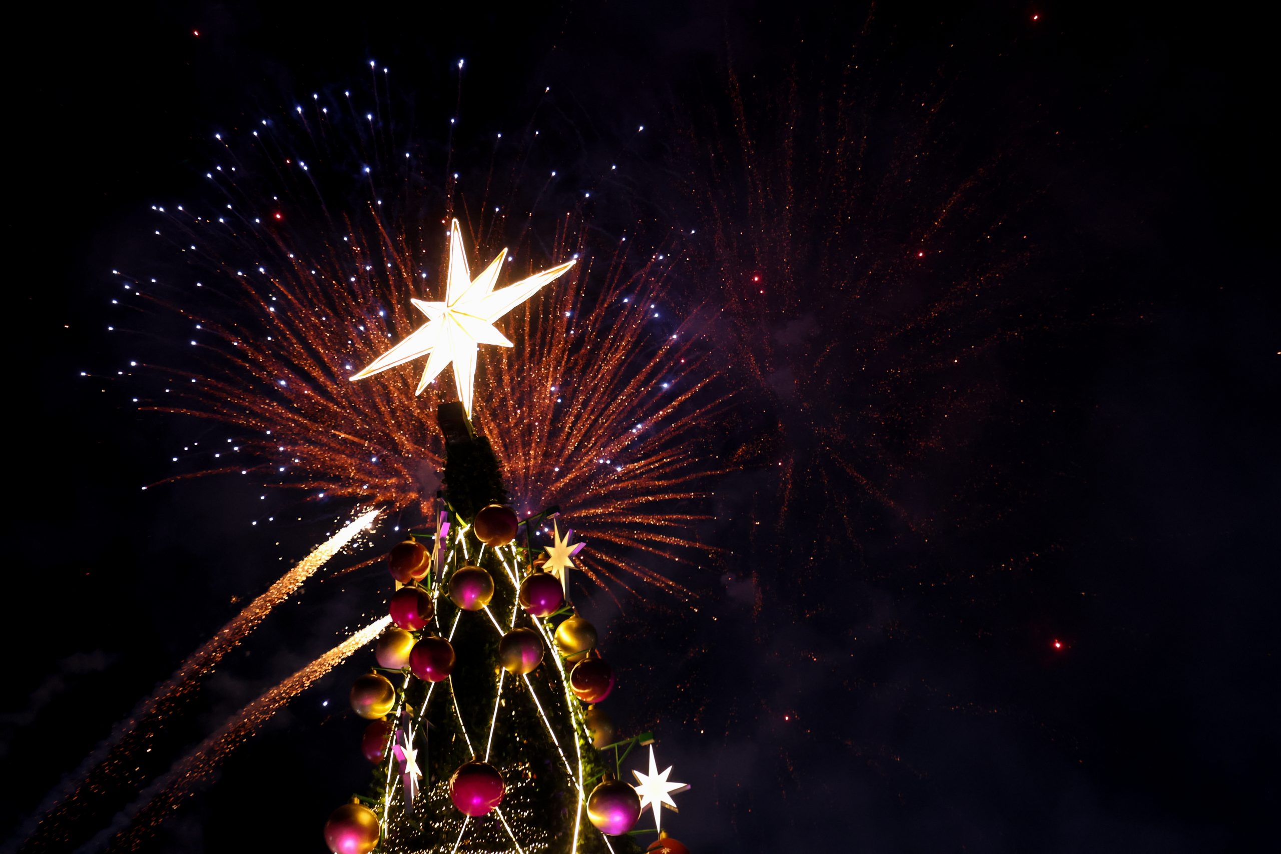 Al pie del tradicional árbol de más de 30 metros de altura, rodeado por una pantalla multicolor y decorado con relucientes estrellas, así como esferas, fue el sitio donde el mandatario y su esposa iniciaron las fiestas decembrinas. Tras oprimir un “botón”, cientos de luces iluminaron la explanada pública, mientras los juegos pirotécnicos resonaban a la distancia para dar la bienvenida a la Navidad en Hidalgo.