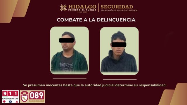 La Secretaría de Seguridad Pública de Hidalgo (SSPH) mantiene resultados contundentes en el municipio de Tula de Allende y su región, donde fueron asegurados en flagrancia dos hombres presuntamente dedicados al robo mediante “cristalazos” a particulares, luego de dañar una camioneta y sustraer mercancía en un estacionamiento comercial de la colonia Unidad Habitacional Pemex.