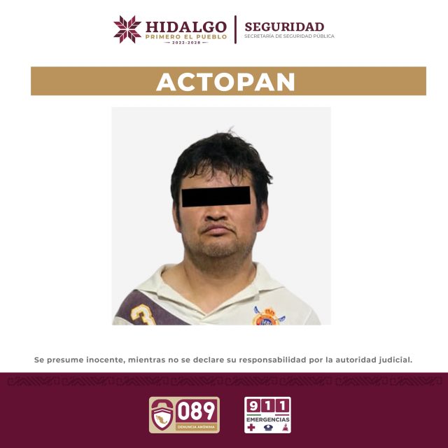 En acciones de prevención a la violencia y la delincuencia relacionadas con el delito de narcomenudeo, una persona fue asegurada por agentes de la Secretaría de Seguridad Pública de Hidalgo (SSPH) en el municipio de Actopan.
