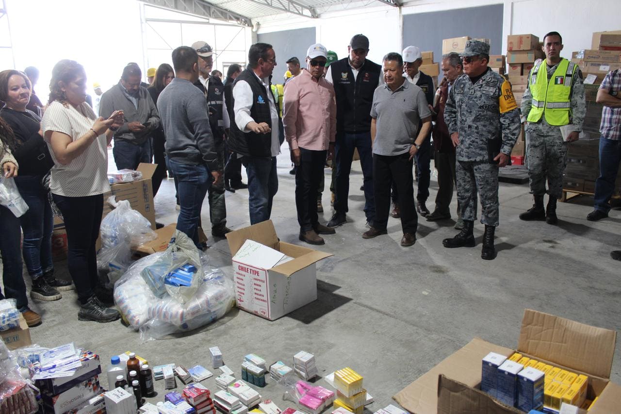 Personal de supervisión, junto con los Contralores del Despacho del Gobernador y del Sistema DIF, verificó la recepción de 23 planchas con insumos humanitarios, entre los que se encuentran: repelente para mosquitos, sueros orales, toallas femeninas, botellas de agua, gasas y curitas, agua oxigenada, pañales, jabón neutro, pasta y cepillo dental, medicamentos, biberones, gel antibacterial y leche en polvo.