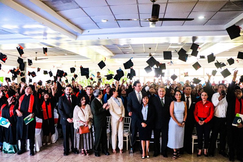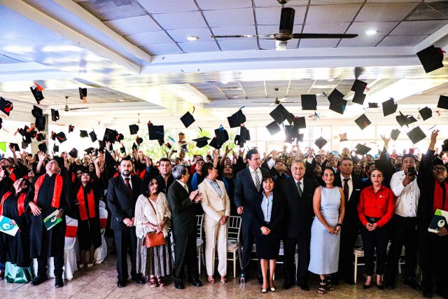 El evento reunió aproximadamente 450 asistentes, entre autoridades educativas, invitados especiales, personal de la institución, egresados y sus familiares, quienes fueron testigos de este importante logro académico.