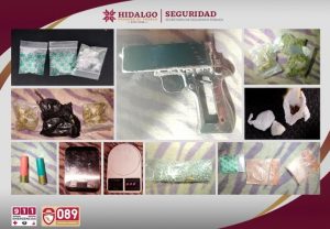 En coordinación con la Procuraduría General de Justicia de Hidalgo (PGJEH) y la Secretaría de la Defensa Nacional (Sedena), los oficiales detuvieron a dos hombres, a quienes les fueron aseguradas 120 dosis de hierba seca con características de marihuana y 47 dosis de droga sintética conocida como “cristal”.