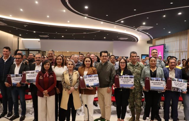 En esta sesión se entregó de manera simbólica los 12 Atlas Municipales de Riesgos, que representan una herramienta esencial para la planeación, la toma de decisiones informadas y la protección del patrimonio de las comunidades.
