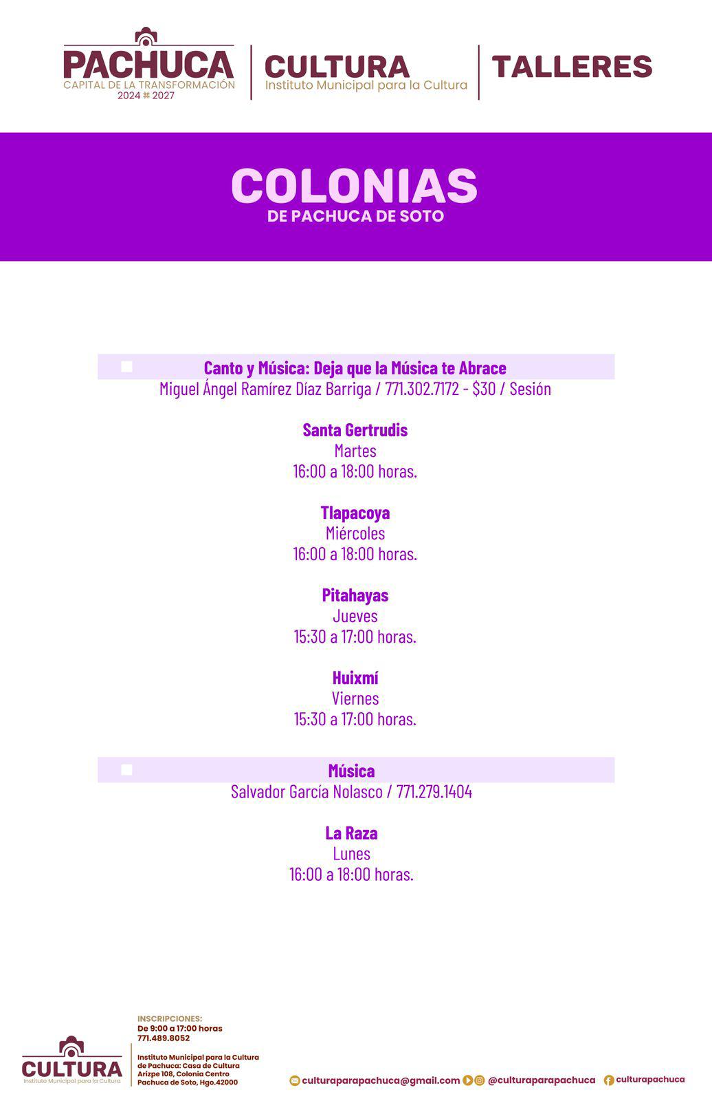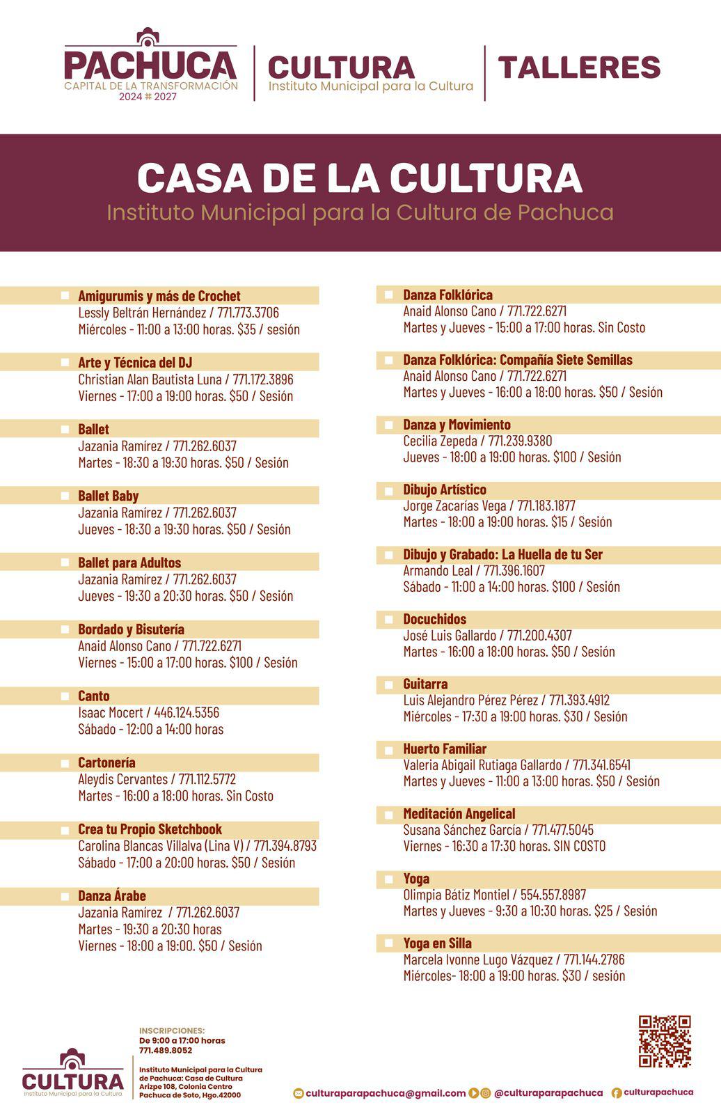 El Instituto Municipal para la Cultura de Pachuca, que dirige Ángel Aguillón López, anunció la implementación de 38 talleres itinerantes con el objetivo de fortalecer el tejido social a través del desarrollo cultural, enfocado en la creación y difusión artística.