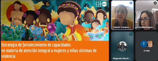 Durante la primera sesión virtual con el Grupo Focal, Angélica Ramírez Dávila, especialista en proyectos de prevención y atención de las violencias del UNFPA México, coordinó el análisis de las problemáticas que enfrentan las dependencias convocadas y sus principales necesidades, en relación con la atención a mujeres en situación de violencia.
