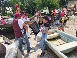 Por instrucción del gobernador Julio Menchaca Salazar, personal del gobierno de Hidalgo se trasladó por vía acuática para hacer llegar despensas y víveres a las familias afectadas de la localidad de La Punta de Hualula, en el municipio de Eloxochitlán.