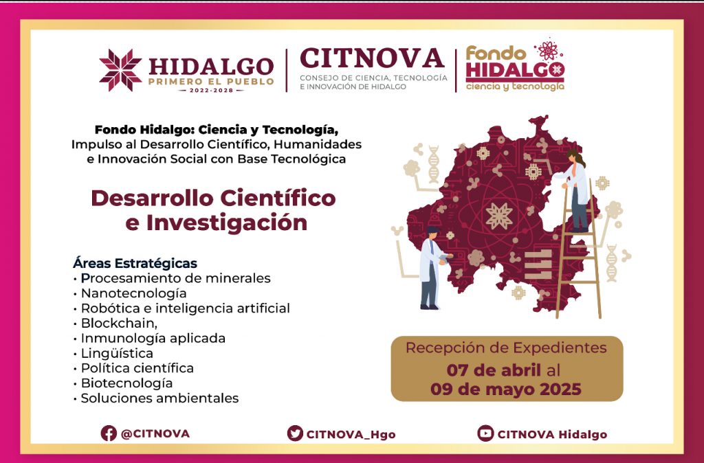Con el firme compromiso de fortalecer el ecosistema de innovación y bienestar en el estado, el Consejo de Ciencia, Tecnología e Innovación de Hidalgo (Citnova) lanza el programa “Fondo Hidalgo, Ciencia y Tecnología”, con una inversión total de 10 millones de pesos.