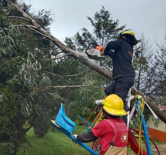 A través de la dirección de Protección Civil se mantienen recorridos en campo y se coteja el reporte de la caída de árboles en Huajomulco, a fin de prestar el apoyo necesario en caso de que estos maderables obstruyan el paso o requieren de seccionamiento, luego de caer.