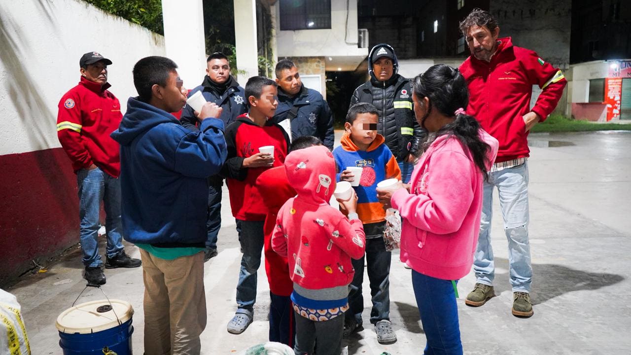 Durante los recorridos realizados por Protección Civil Municipal, en coordinación con el DIF Municipal Huejutla que preside Kristel Rodríguez Flores, Seguridad Pública y el área Médica, se identificó y apoyó a personas que se encontraban en situación de calle, entre ellas una familia de siete integrantes, un adulto, un adolescente y cinco menores, provenientes de Tantoyuca, Veracruz, quienes fueron trasladados de manera segura al refugio temporal que se habilitó en las instalaciones del DIF.