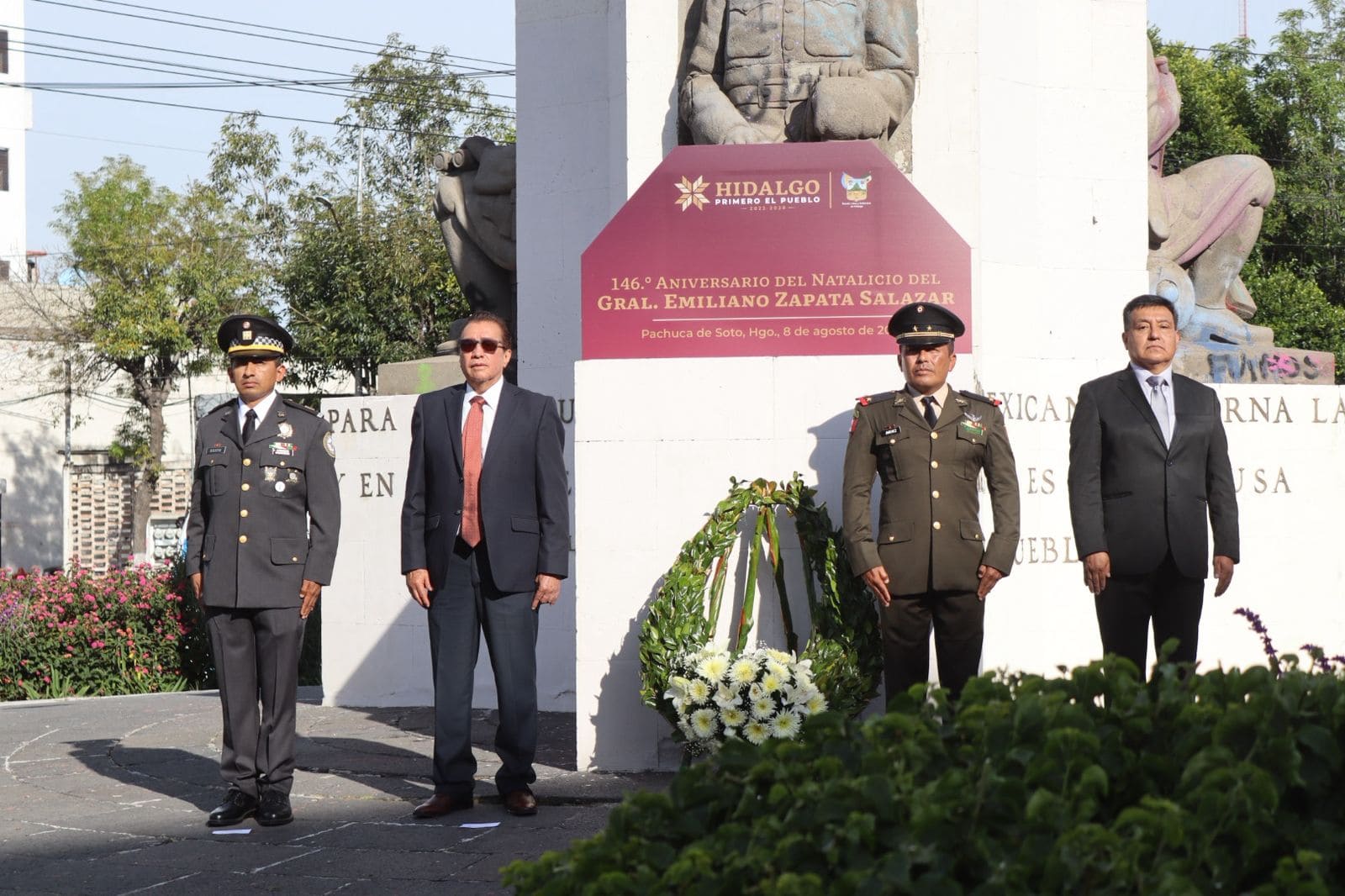 En el marco del 146° aniversario del natalicio de Emiliano Zapata, el secretario del Trabajo y Previsión Social de Hidalgo, Oscar Javier González Hernández, encabezó la guardia de honor en memoria del Caudillo del Sur. Durante su mensaje, el servidor público recordó que la frase “La tierra es para quien la trabaja” sigue siendo un principio vigente, pues hoy, en el segundo piso de la transformación, la estabilidad que anhelamos se alcanza con desarrollo, bienestar social y crecimiento económico. “El progreso de Hidalgo se construye con unidad, con rumbo claro y firme. Esa dirección nos la brinda el liderazgo del gobernador Julio Menchaca Salazar”, afirmó.