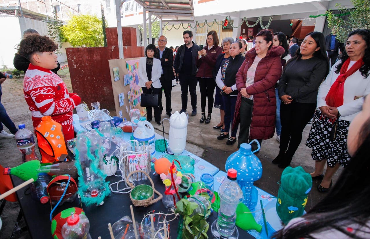 Asimismo, estudiantes de las escuelas de la Zona 021 presentaron proyectos elaborados con materiales reciclados: la Primaria Venustiano Carranza, con “Navidad en familia, reciclando juntos”; la primaria Benito Juárez con “Uso de material reciclado para trabajar contenidos del Plan de Estudios”. La primaria Madero y Pino Suárez, con el proyecto “Estilos de vida, desarrollo y riesgos ambientales”, y la primaria Enrique Rébsamen, con “Filtro casero”.