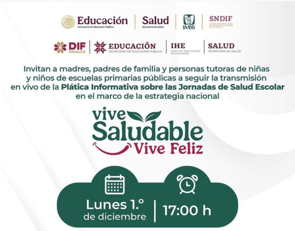 Se invita a madres, padres y personas tutoras de primarias públicas a seguir mañana la transmisión en vivo de la Plática Informativa sobre las Jornadas de Salud Escolar.