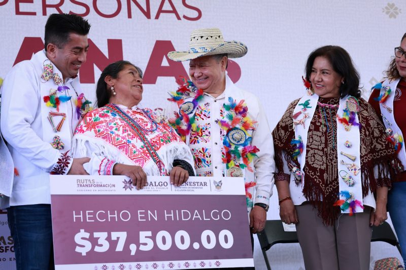 De igual manera, el titular del gobierno de Hidalgo realizó la entrega simbólica de los premios del concurso estatal “Hecho en Hidalgo”, que contó con una bolsa de más de 367 mil pesos para reconocer a 18 personas artesanas, como Paula Martínez Bartolo que obtuvo el galardón a la mejor pieza del certamen.