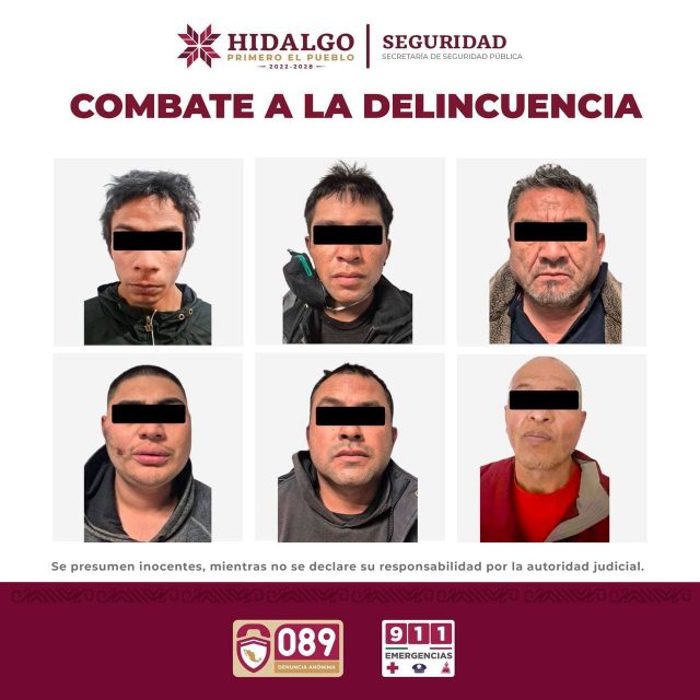 Mediante trabajos de inteligencia operativa, la Secretaría de Seguridad Pública de Hidalgo (SSPH) logró la identificación y captura de seis integrantes de una banda dedicada al robo de casa-habitación en fraccionamientos exclusivos de Pachuca.