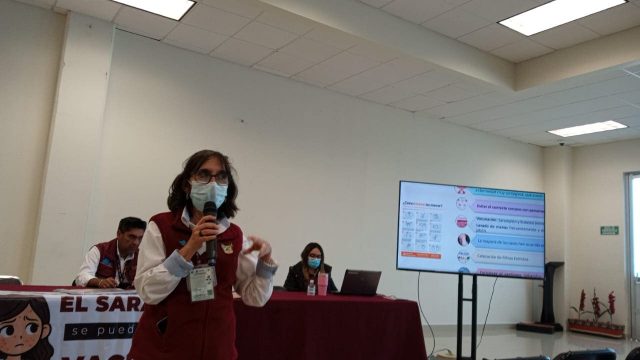 Durante las sesiones de capacitación, los profesionales de la salud ofrecen información actualizada sobre la evolución del sarampión, así como síntomas a identificar, además de las mejores prácticas para la vacunación y las estrategias de atención a la población en riesgo.